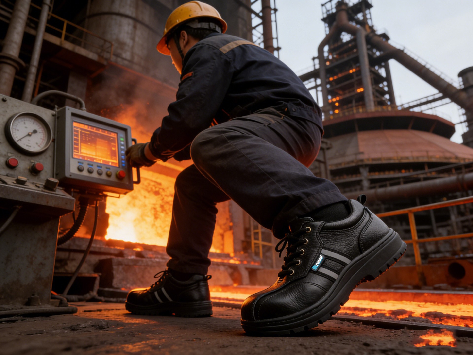 专业针对金属碎屑,高温、酸碱,工业油污等复杂环境设计。动感飘带运动设计,嵌入式银色反光条的设计,夜间工作也安全,一体防护设计牛皮帮面易打理不藏污,360度手工上线不开胶,进口头层牛皮韧性好天然橡胶耐磨防滑底更耐穿,用Comfort⑧技术的纺织衬里,可控制鞋内的空气环境。使这双鞋抵抗极端环境.