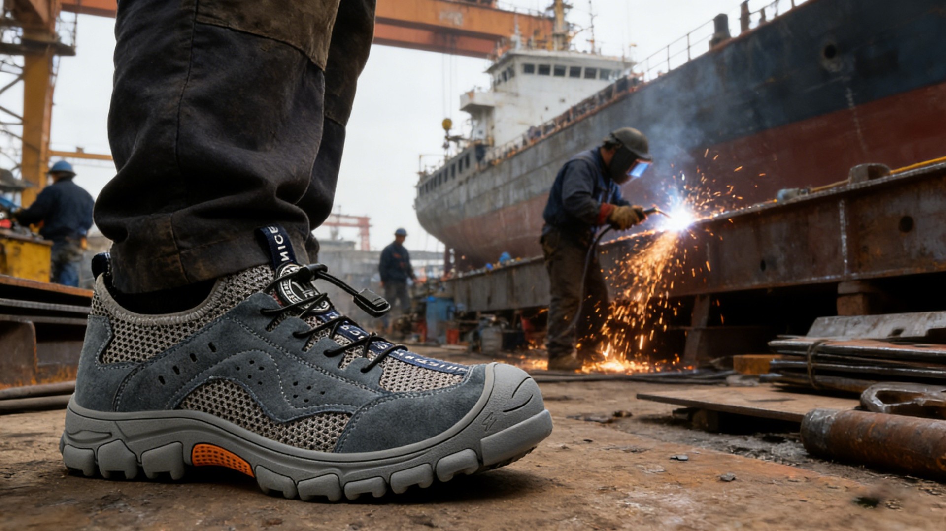 本品采用天然橡胶鞋底,柔韧防滑、耐磨耐折,抓地稳定,适配多种作业地面环境。帮面选用磨砂绒皮拼接透气网布,质感扎实、耐用抗造,同时保证良好透气性,长时间穿着干爽不闷脚。 搭载宝丽优高弹鞋垫,缓震舒适,有效缓解足部疲劳。采用非金属防护设计,无磁无铁,过检顺畅,防护性能可靠。整体兼顾舒适、轻便与实用,适合工厂、车间、仓储、物流等多场景作业穿着。