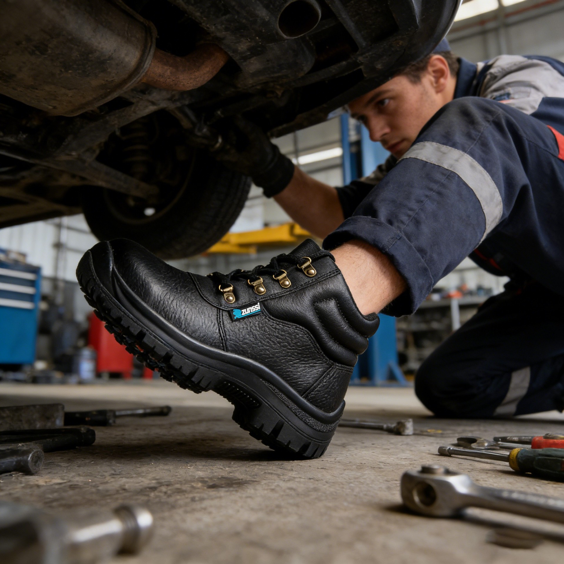 低帮经典系列,双提带设计,优品畅优皮帮面,条带是反光条设计,夜间工作也安全,采用Comfort⑧技术的纺织衬里,可控制鞋内的空气环境。这双安全鞋是黑色的低帮款式。有一个防砸钢头,防刺穿钢片及天然橡胶防滑外底这双鞋能抵抗极端低温和油污。