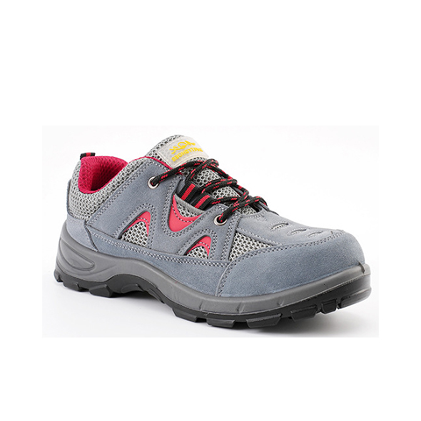 这款休闲系列安全鞋。帮面采用反绒皮材质,耐磨抗撕裂,质感细腻且耐用;搭载巴斯夫聚氨酯防滑鞋底,不仅 防滑性能优异,还兼具良好的耐磨性与缓震性,能有效应对复杂地面,减轻行走冲击。更具亮点的是其非金属绝 缘防护设计,满足电子制造等对绝缘、非金属材质有要求场景的足部防护需求,同时具备防砸功能。鞋面采用网 布拼接设计,提升透气性,避免脚部闷热;红黑相间鞋带搭配橡塑鞋扣,系缚牢固;红色内里亲肤舒适。适用于 电厂、电子制造、化工、建筑施工、机械操作等多种需要足部防护的场景。