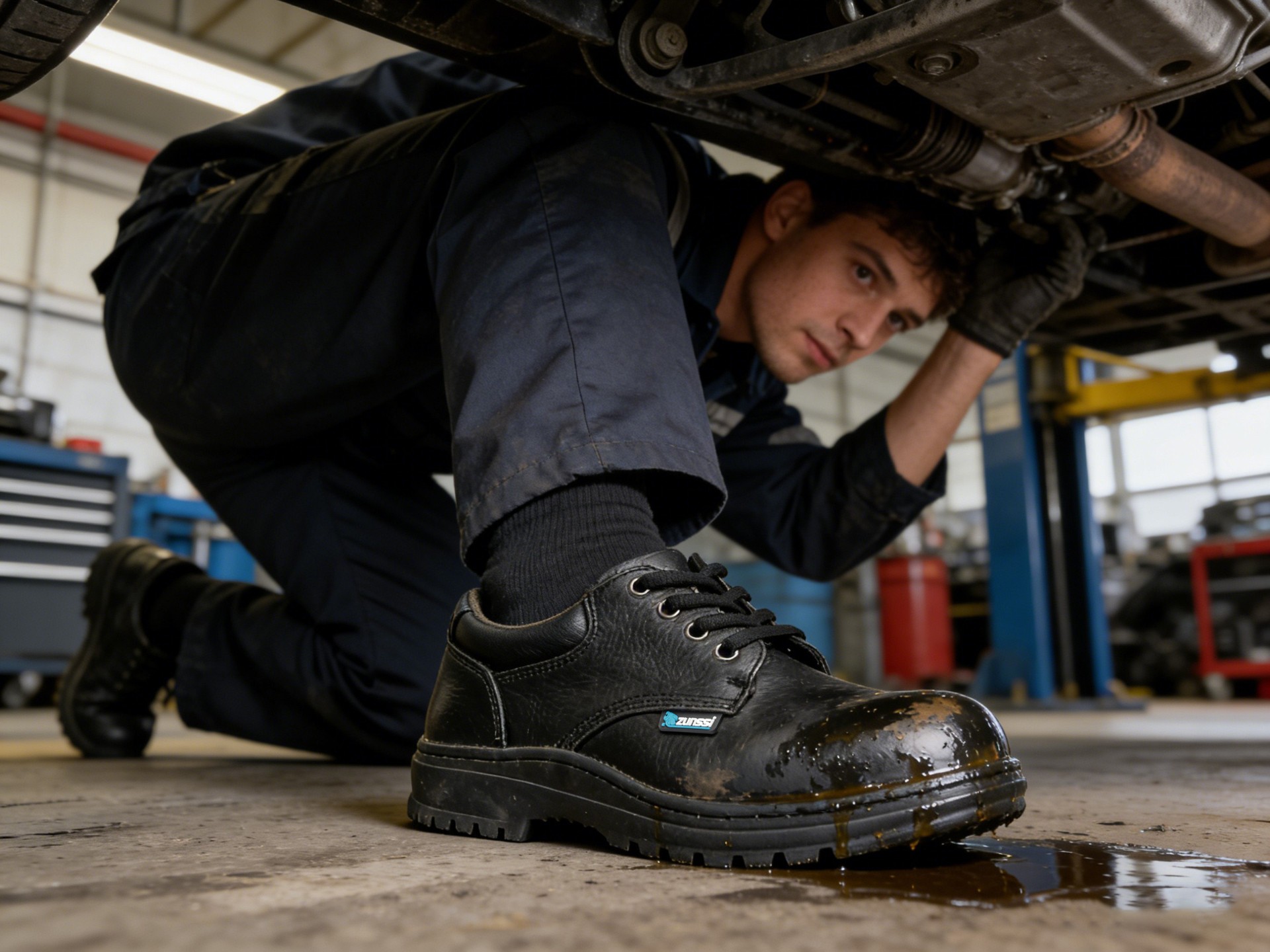 全皮料PU底安全鞋采用优质真皮材质制成鞋面,兼具透气性、耐磨性与舒适度,适合长时间穿着。鞋底选用聚氨酯(PU)材料,轻便柔韧,提供良好的缓震和防滑性能,适应多种工作环境。
