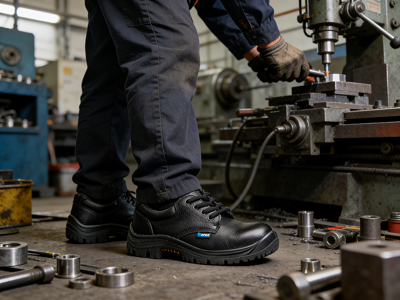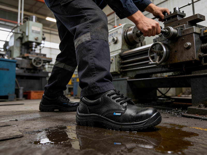 全皮料PU底安全鞋采用优质真皮材质制成鞋面,兼具透气性、耐磨性与舒适度,适合长时间穿着。鞋底选用聚氨酯(PU)材料,轻便柔韧,提供良好的缓震和防滑性能,适应多种工作环境。